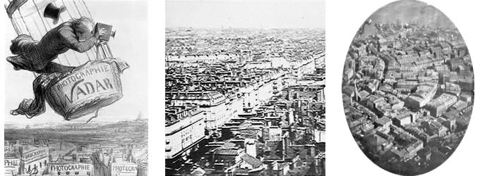 1837⇢ The first aerial photograph was taken by Gaspard Felix Tournachon of Place De L' Etolie, Paris. It was shot from an altitude of 520 meters in a tethered balloon.