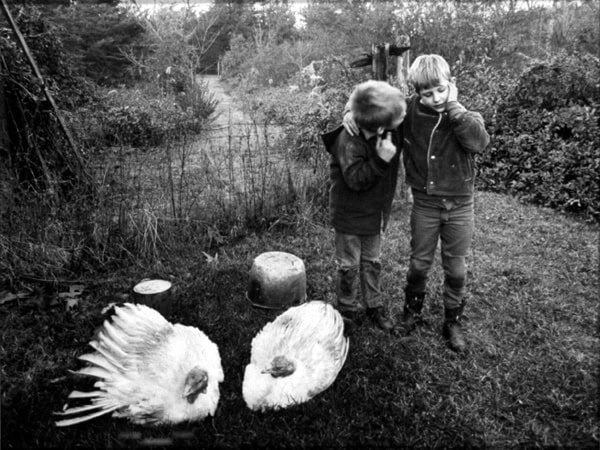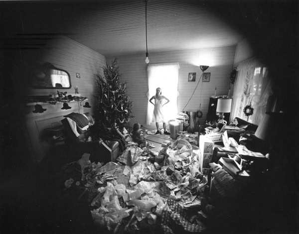 Most, or all, of Gowin’s images were done exclusively with a large format camera. He also experimented with 4×5 lenses mounted on an 8×10 camera, resulting in circular images surrounded by darkened vignettes.
